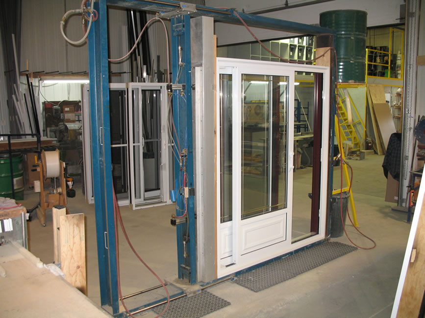 Tous les produits de fenestration, transitent par la table de finition. À cet endroit, il y a vérification de l’équerrage pour tous les produits, l’ajustement des roulettes servant au coulissement du volet ouvrant et de la moustiquaire pour la porte-fenêtre ainsi que l’inspection de la crémone et l’alignement de la serrure à pênes multiples avec les gâches. Le dernier examen est l’expérimentation de toutes les pièces de la quincaillerie, afin d’assurer une fermeture hermétique et un engagement tout en douceur. Ces inspections terminées, les produits sont acheminés vers le département de livraison.