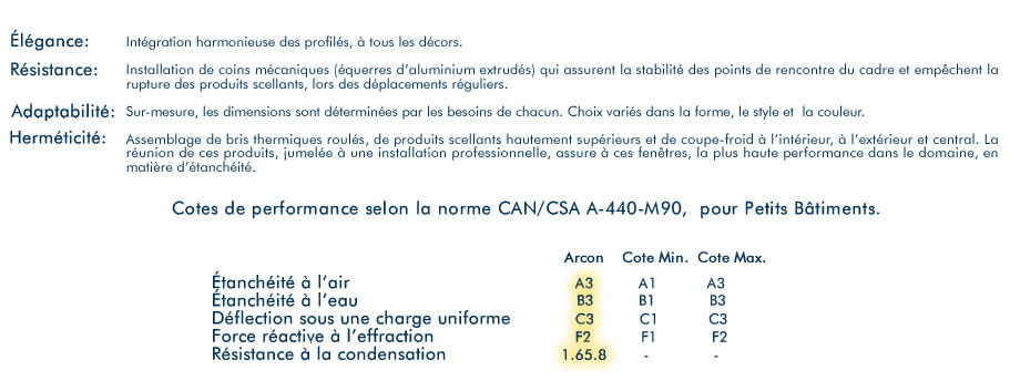 Elle se distingue également de la concurrence, par l’emploi de parcloses qui maintient les thermos dans les feuillures des volets. L’utilisation de ces moulures amovibles accélère grandement le remplacement d’un thermos. Afin d’augmenter la résistance à la corrosion et l’usure précoce, le seuil de la porte-fenêtre est passé par un procédé d’anodisation. Hautement sécuritaire, la porte Arcon 2025 est pourvue d’un dispositif de verrouillage à tringle métallique, en conformité avec le système de serrure à pênes multiples. La poignée est assortie d’une serrure à clef à l’extérieur et d’un dispositif à levier à l’intérieur.